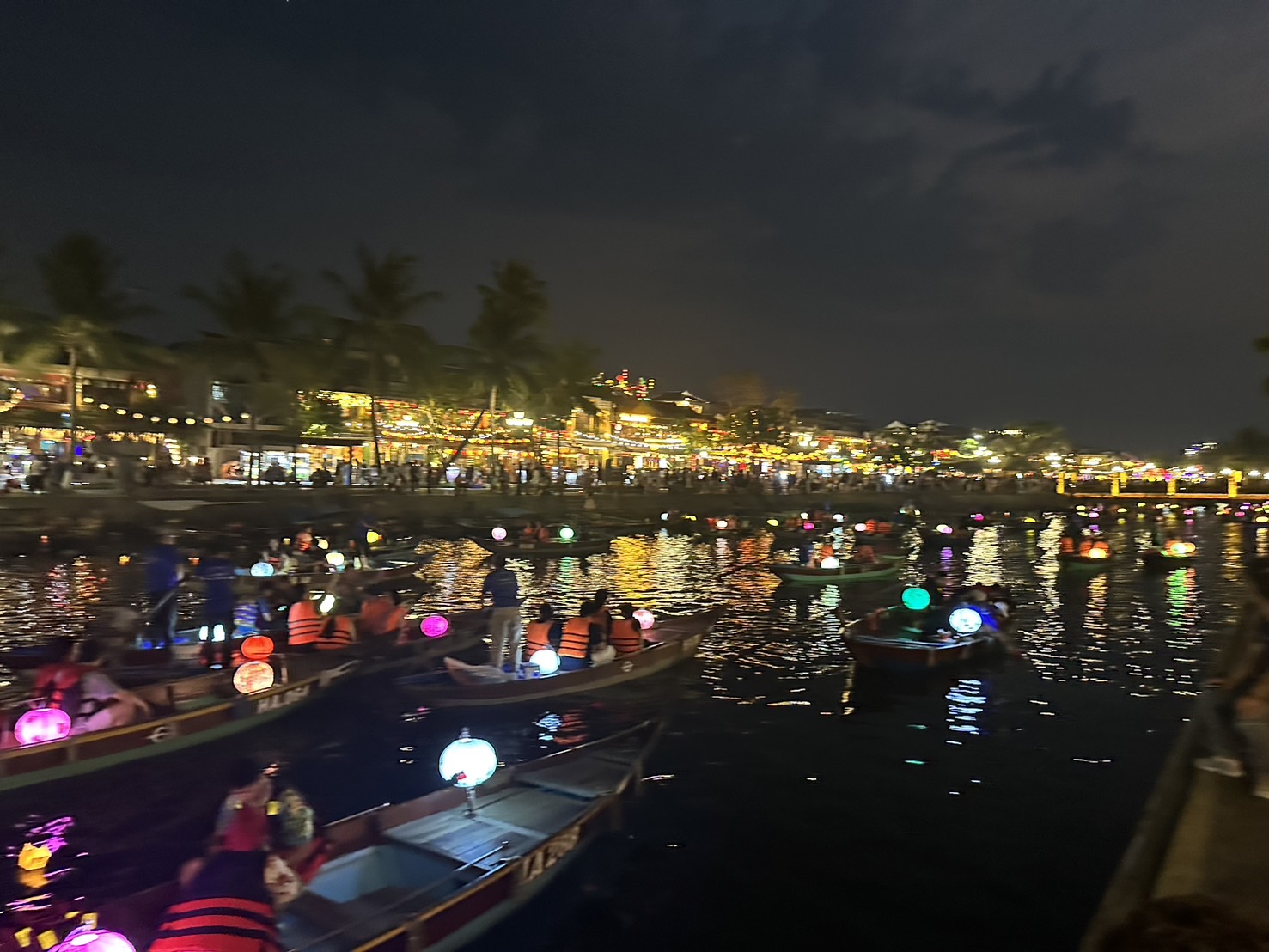 世界遺産に登録されているベトナム中部の古都「ホイアン」。夜になると色とりどりのランタンが街を彩り、幻想的な雰囲気に包まれます。トゥボン川ではランタンを灯した小舟が行き交い、川面に映る光がさらに美しさを引き立てます。観光客は遊覧船に乗ってランタンを流したり、写真撮影を楽しんだりと、ホイアンならではの特別な夜を過ごすことができます。