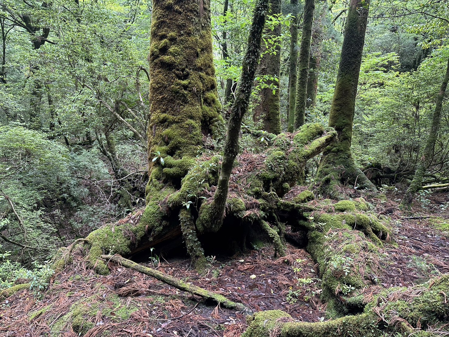 世界自然遺産・屋久島を象徴する屋久杉と苔むす森。長い年月を経て成長した屋久杉の根や倒木にびっしりと苔が広がり、独特の神秘的な景観を生み出しています。森の中は湿度が高く、年間を通じて苔が生き生きと茂り、映画の舞台を思わせる幻想的な雰囲気が漂います。登山やトレッキングで訪れる人々を魅了する、屋久島ならではの自然美です。